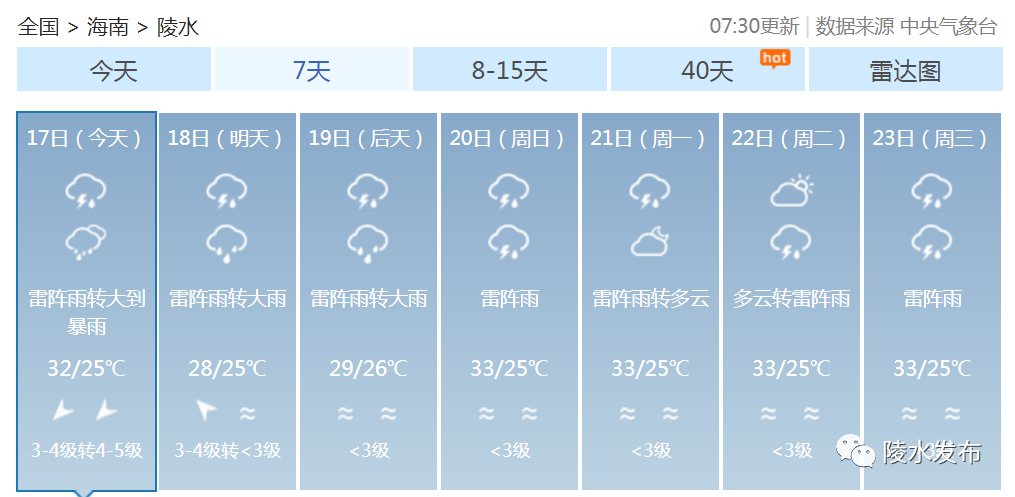 陵水未来7天天气预报