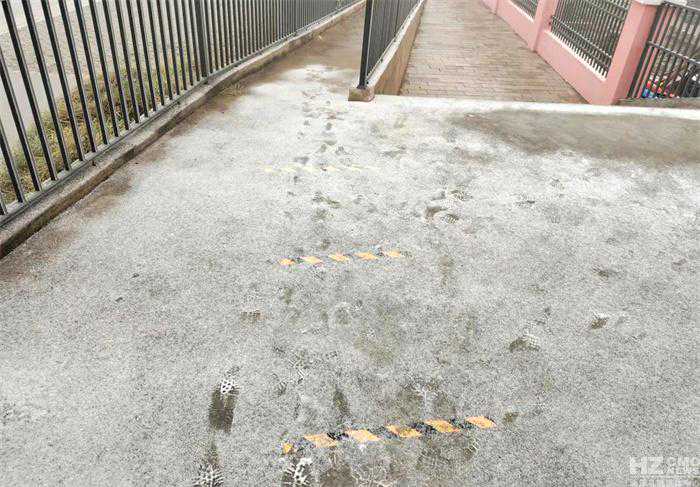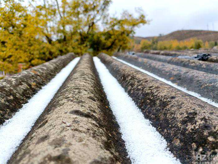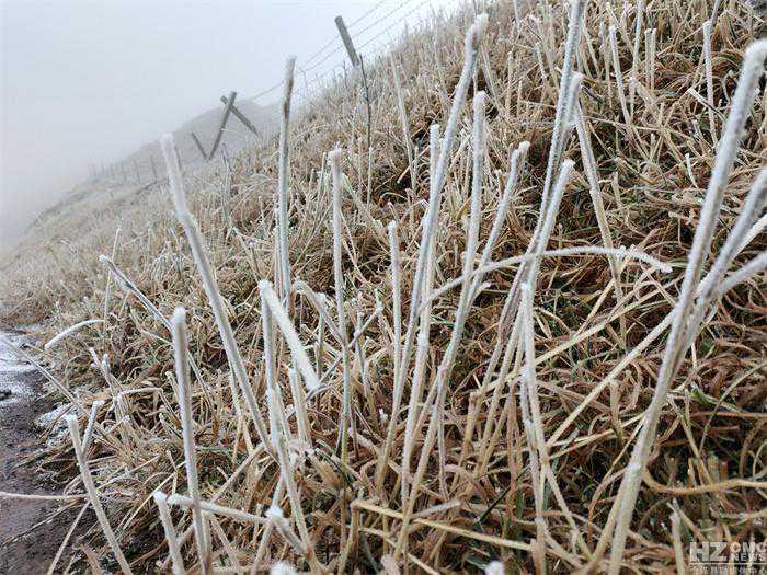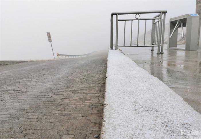大海草山景区门口堆积起一层薄薄的雪。(大海草山景区罗桢摄)
