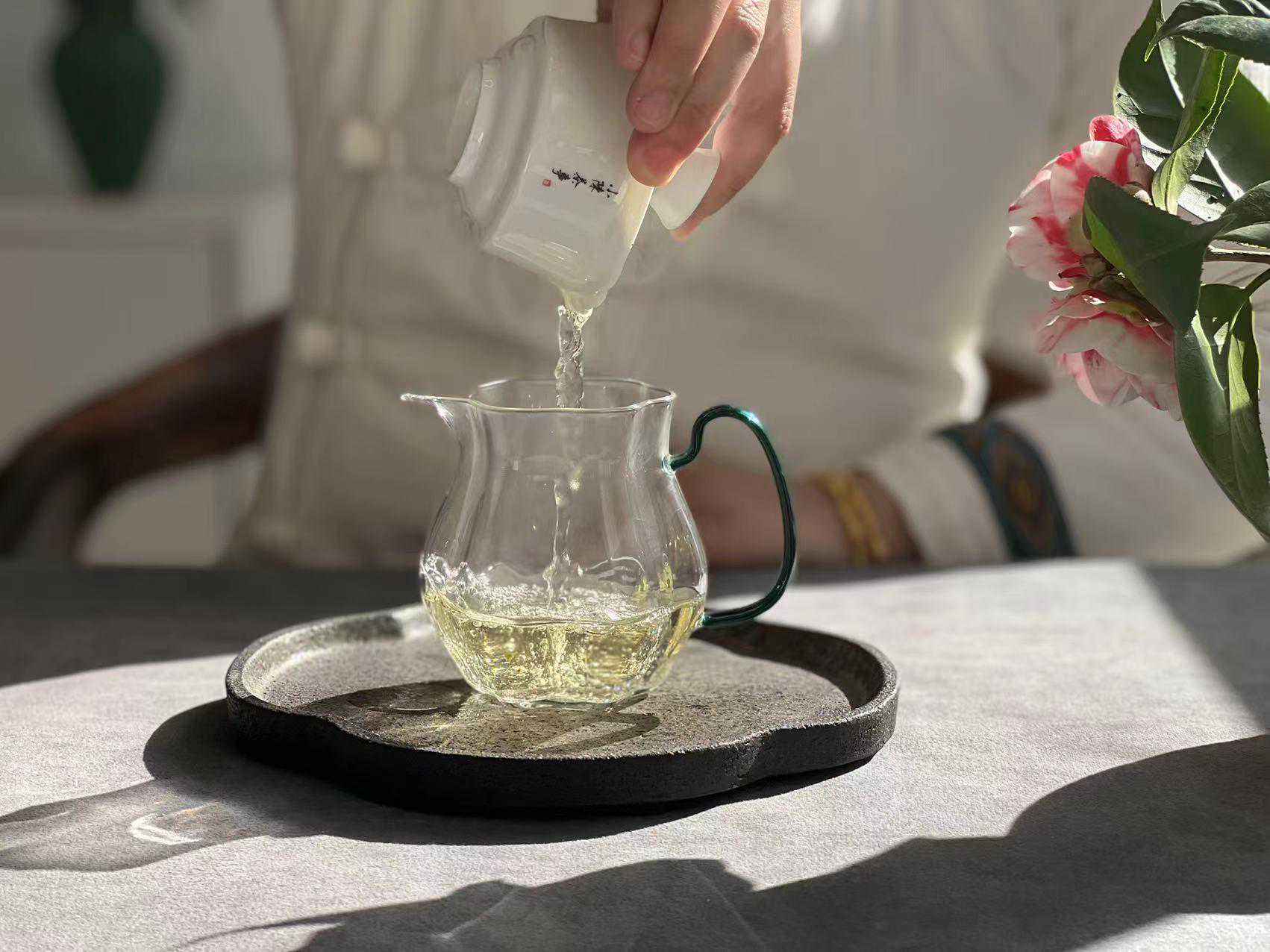 连泡好几冲,将茶汤统一泡出来后,倒入玻璃杯里。