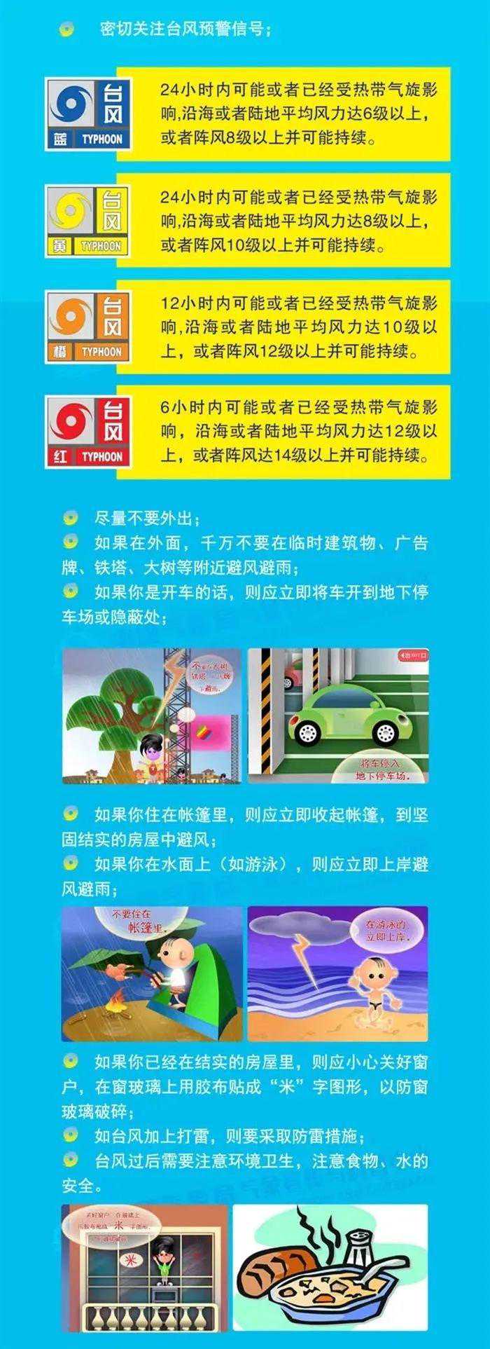 4.加固或者拆除易被风吹动的搭建物,人员切勿随意外出,应尽可能待在防风安全的地方,确保老人小孩留在家中最安全的地方,危房人员及时转移。当台风中心经过时风力会减小或者静止一段时间,切记强风将会突然吹袭,应当继续留在安全处避风,危房人员及时转移。
