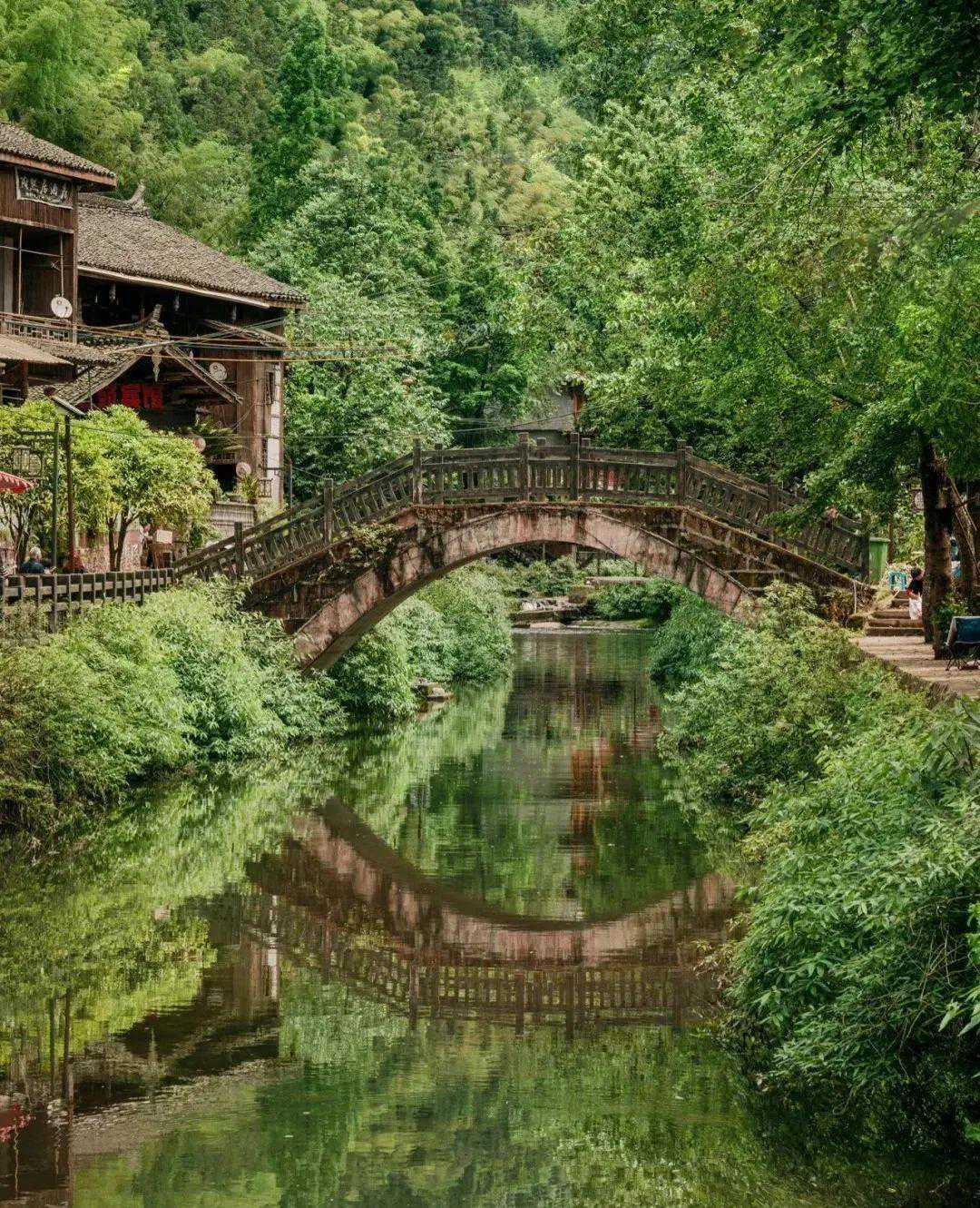 岁月好像从未在这里停留过。镇上至今仍保留着明清风貌的吊脚楼式建筑,古树、修竹、溪水、古桥,宛如一副天然的水墨画卷。