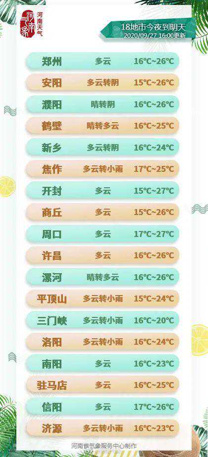 30日夜里,北部多云到阴天,部分地区转小雨或零星小雨;其它地区多云。(河南气象)