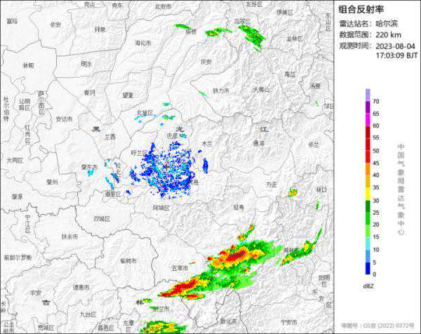 其中,5日伊春南部、绥化东北部、哈尔滨北部、鸡西、牡丹江东北部有短时强降水、雷雨大风、小冰雹等强对流天气,最大小时雨量20~40毫米,阵风7~8级。