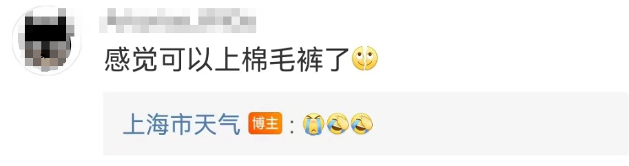 网友:感觉可以穿上棉毛裤了