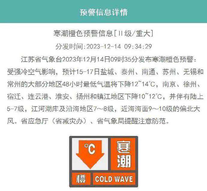 北方有一股冷空气正在东移南下,15日白天开始影响我市。受其影响,我市15-17日最低气温将下降10~12°C,并伴有陆上5~7级、江河湖面6~8级的偏北大风,17日早晨最低气温-6°C左右,有冰冻。