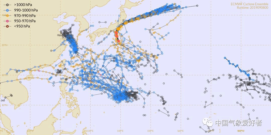 几个台风胚胎的集合分析,中气爱根据ECMWF数据制作