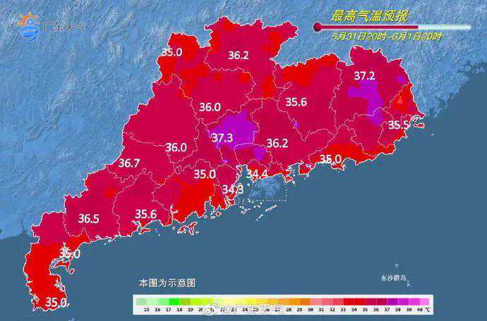 受其影响,预计未来三天,广东天气仍然持续炎热,6月1日到3日,随着副高减弱和“玛娃”的东移远离后,广东大部的雷阵雨天气日趋频繁,局地雨势大(局地暴雨或大暴雨),雷雨时伴有8级左右短时大风、雷电、短时强降水等强对流天气,另外广东部分市县仍有35℃左右高温,但高温范围日趋减小。