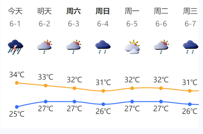 深圳未来天气预报2-4日多云转阴天,间中有(雷)阵雨,最高气温降至32-33℃;5-6日多云到晴天为主;展望7日起再转阵雨天气。