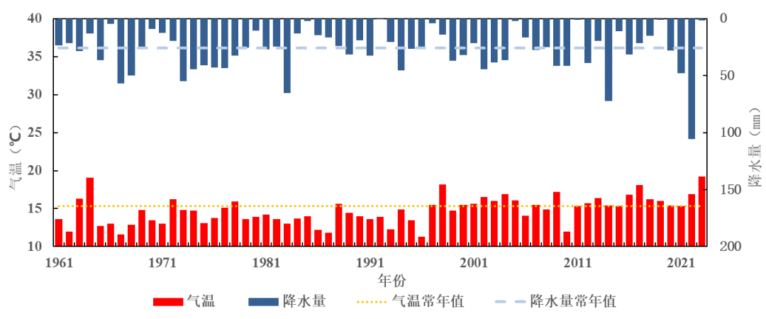 1961-2023年上海全市4月中旬气温和降水