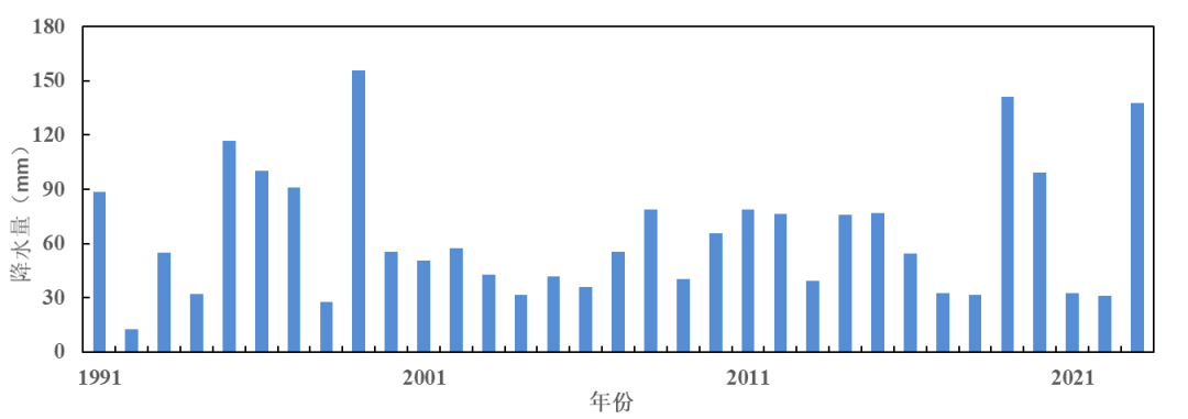 1991-2023年梅雨期间上海市区(徐家汇站)日最大降水量