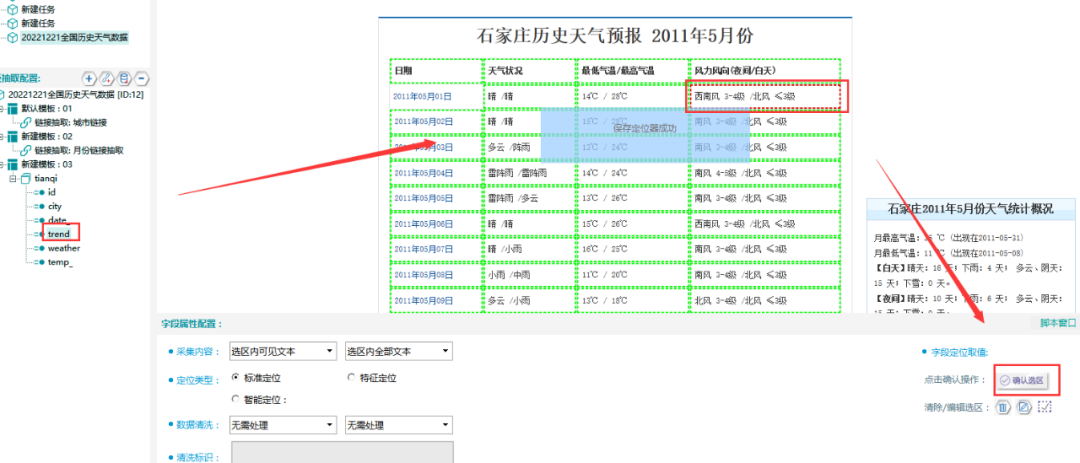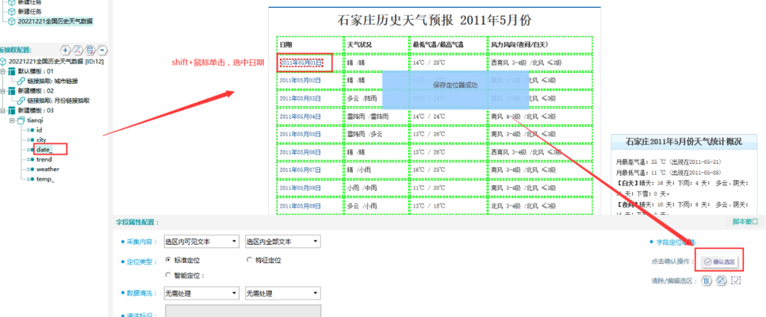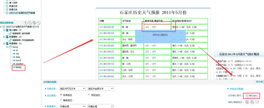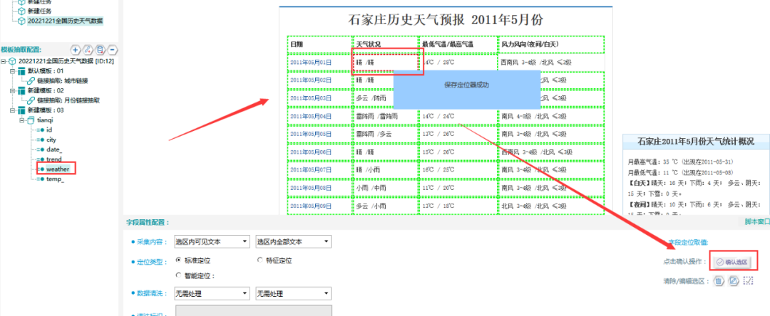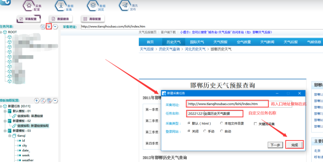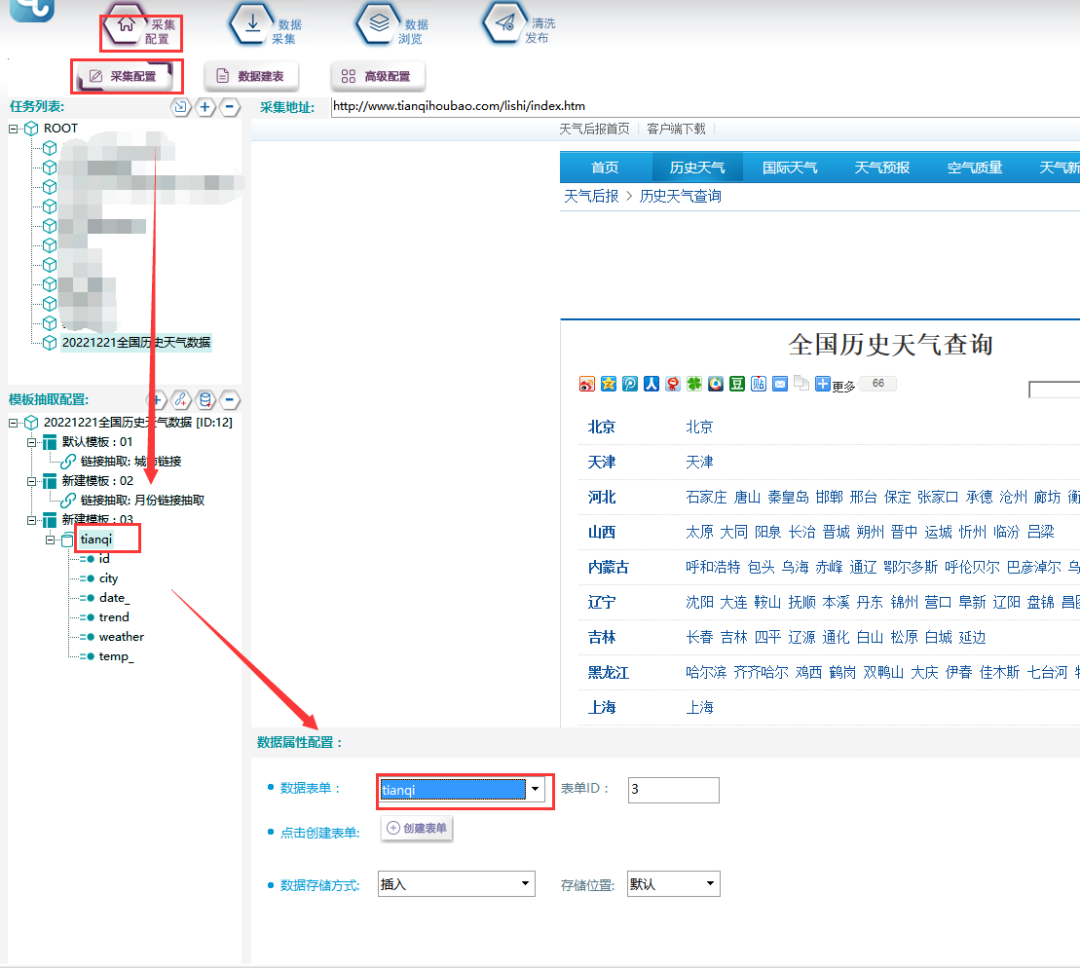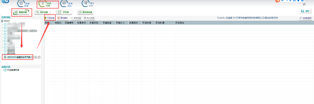 模板配置完成,采集预览没有问题后,可以进行数据采集。
