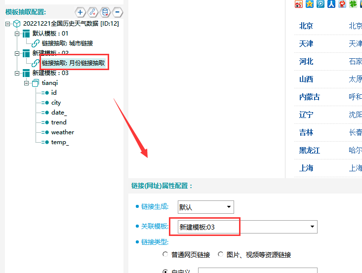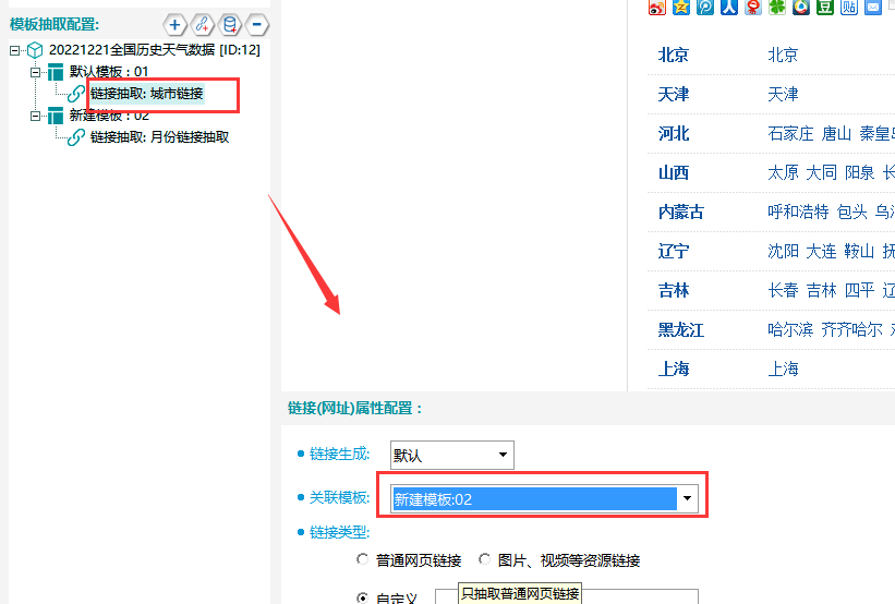 ①新建模板02,在模板02下新建一个链接抽取,改名为【月份链接】。