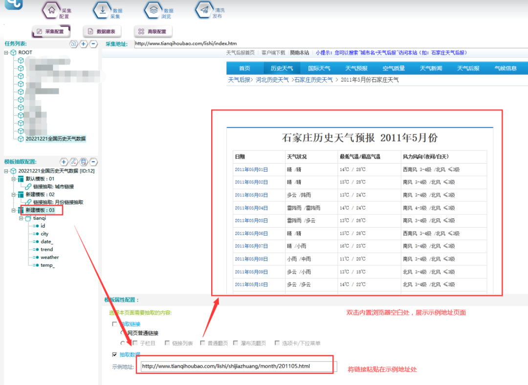 ⑤将链接粘贴到本模板示例地址中,并双击内置浏览器空白部分,加载本链接。