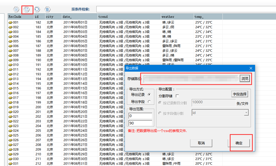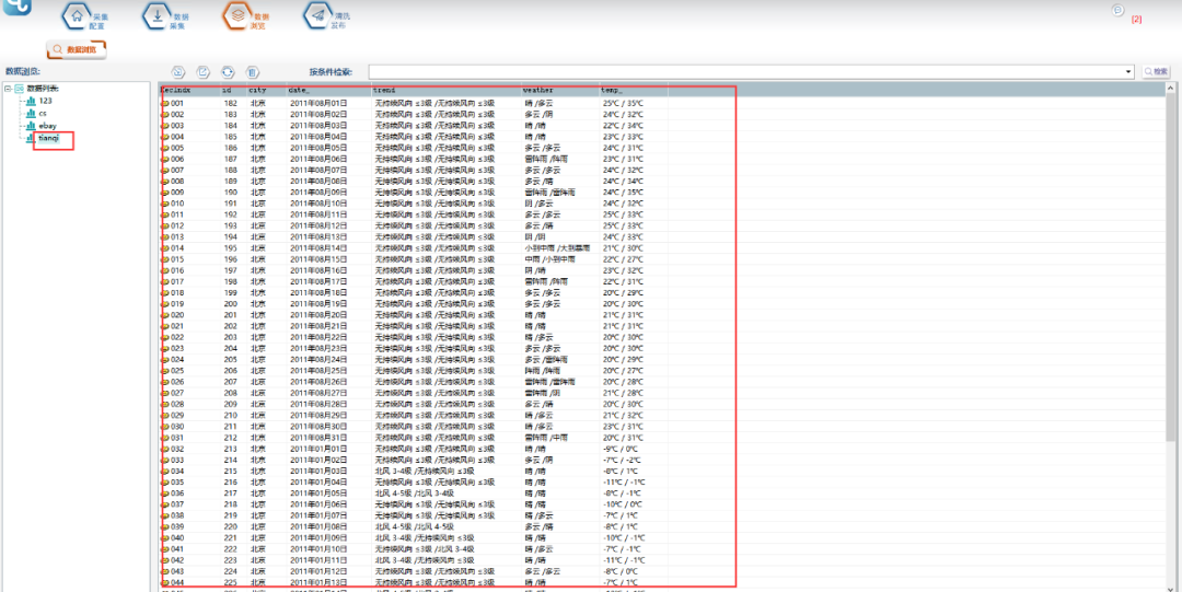 采集结束后,可以在【数据浏览】中,选择数据表查看采集数据,并可以导出数据。