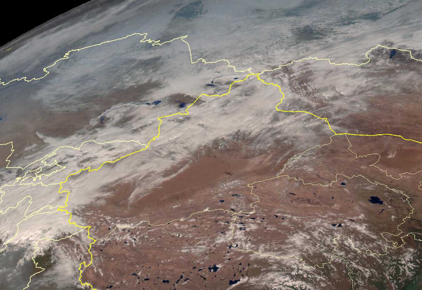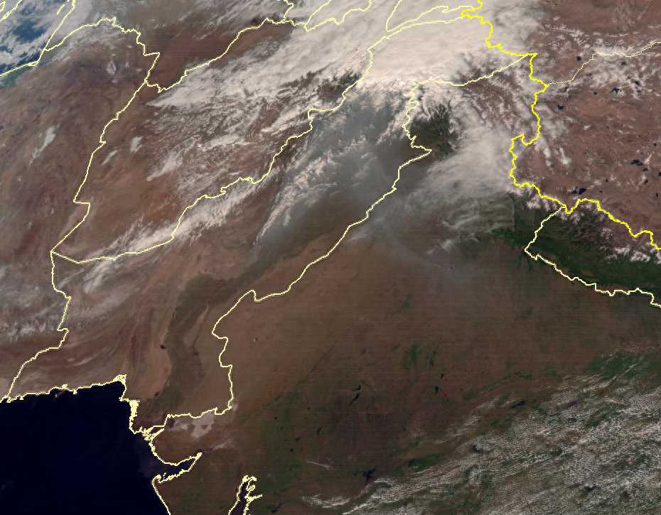 在印度西北部和巴基斯坦北部,也有大片灰色的区域,这也是当地在晴朗天气下日益加剧的空气污染问题。