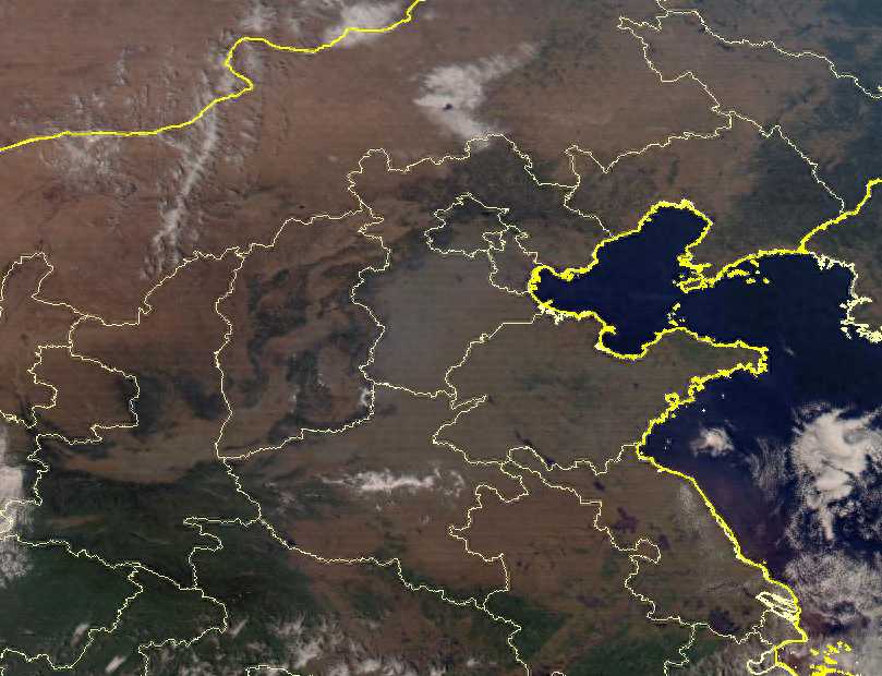 在我国华北地区,午后虽然晴朗无云,但看上去有些脏脏的灰色区域,这是这一地区正在逐渐发展增强的空气污染问题。