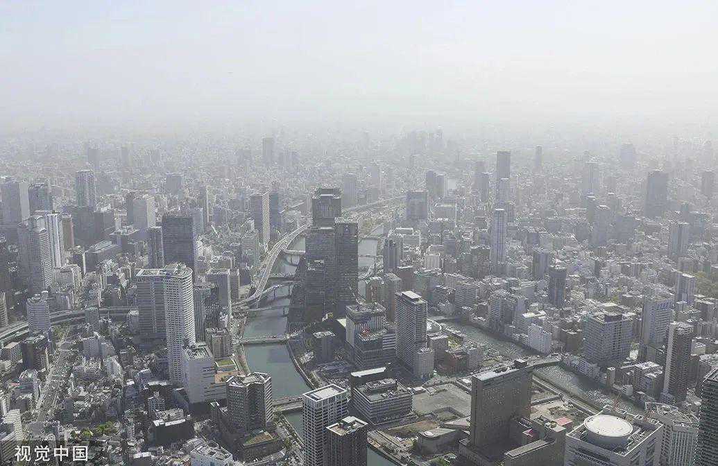 当地时间2023年4月13日,日本东京的能见度很低。机构呼吁市民谨慎行事,因为一些地区的能见度可能低于5至10公里。