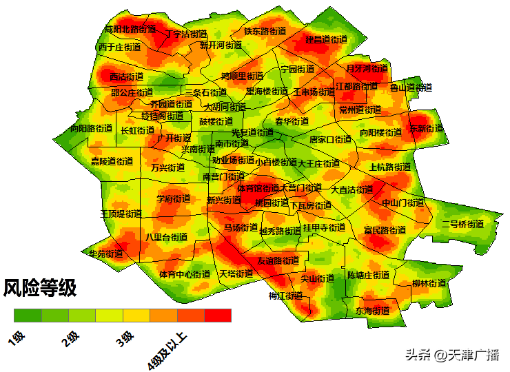 杨柳飞絮飘飞强度主要体现在植源性污染(飞絮和花粉)浓度的变化上,而植源性污染浓度的高低又与人体过敏性鼻炎的发病程度密切相关。都市农业气象服务中心联合天津市泰达医院根据植源性污染浓度变化分析,未来十天中心城区植源性污染浓度及风险等级较高区域主要集中在河西区和南开区的南部区域、河东区东部区域以及河北区和红桥区的北部区域(下图)。