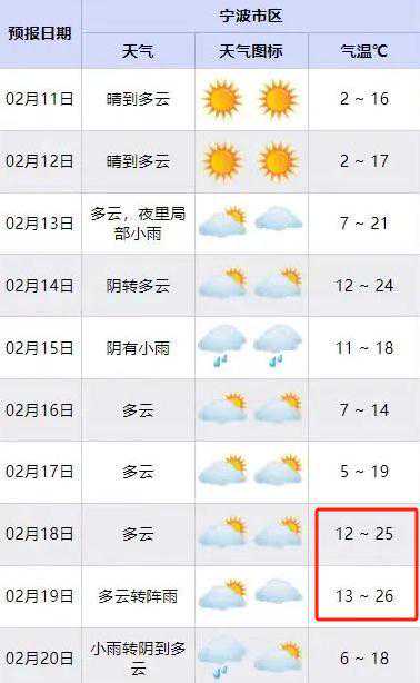 直到14日(初五),气温都是一路回升的趋势,也会达到本轮升温顶点,部分地区会超过22℃,节后(18日19日)宁波更将直冲26℃!