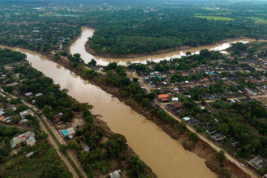 当地时间2024年3月4日,玻利维亚科维哈,洛杉矶河因暴雨而暴涨。