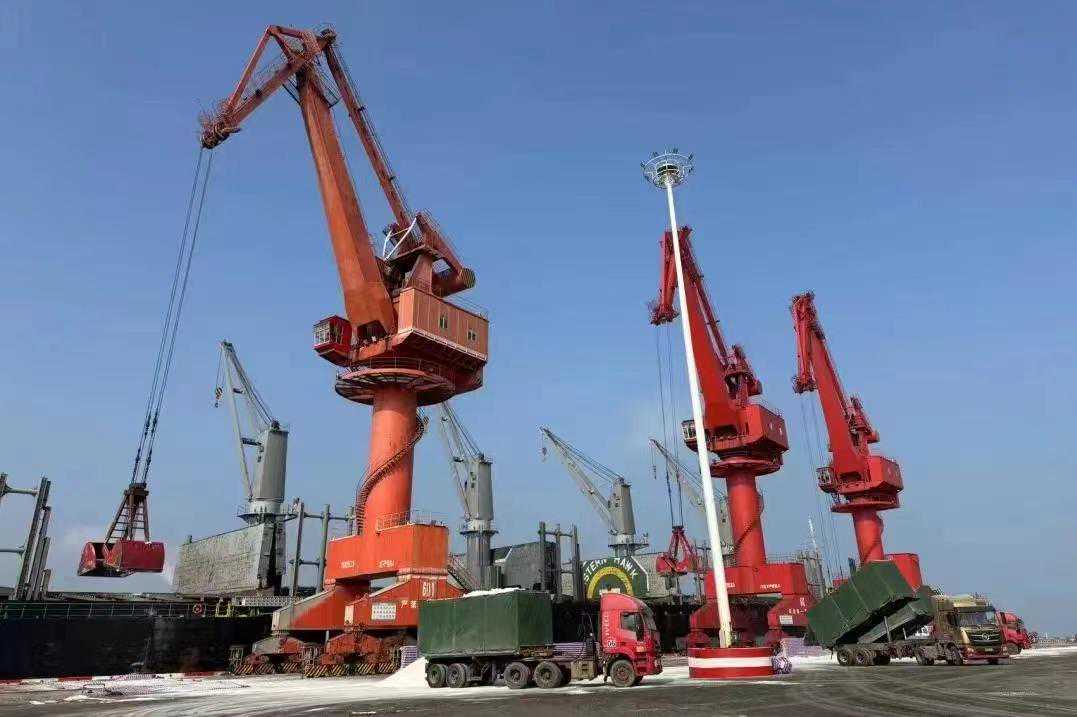 ·新福建客户端3月28(记者陈盛钟通讯员郭沁曦)27日下午,停靠在莆田秀屿港区6号泊位的巴拿马籍散货船“新日和谐”轮,紧张有序地进行硫酸铵装船作业。该货轮将在完成2.9万吨硫酸铵装载作业后驶往巴基斯坦港口,用于当地农业生产。