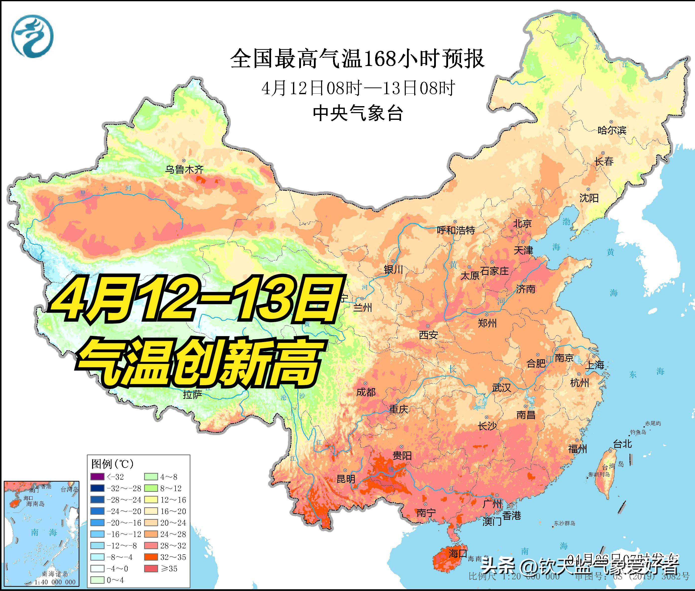 官方权威预报中央气象台最新的预报显示,4月12-13日北方地区将有大片的30℃以上区域,山东、河南、河北等地有望冲击今年第一个高温日(35℃)。而南方地区就更热了,云南东南部、贵州大部、广东广西福建局部和海南大部有大片的32-35℃预报区。这一轮猛烈升温将使得很多地方迎来今年以来气温新高。