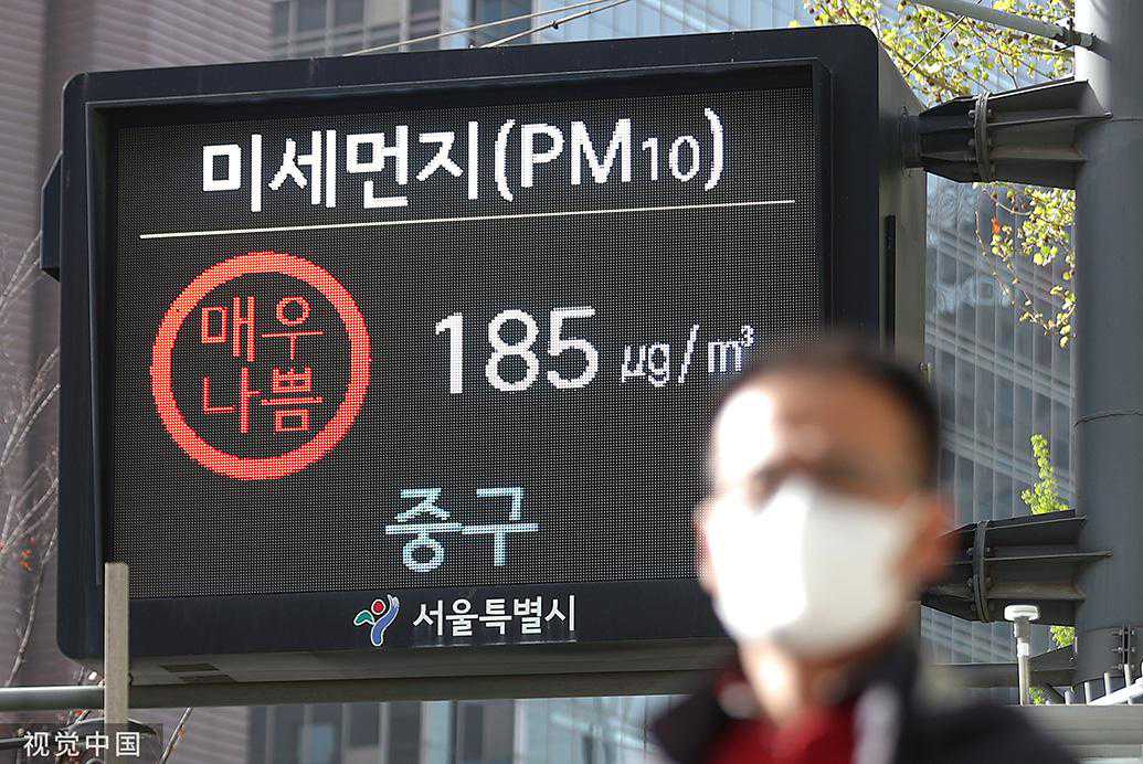 韩国国立环境科学院预测,韩国全国PM10(13日)仍将处于“非常差”的水平。