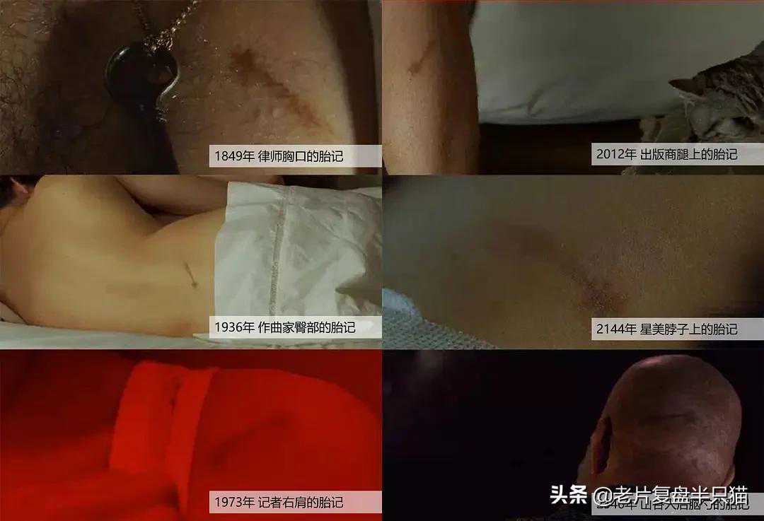 电影里面启用了同一个演员来饰演不同时代完全不同的角色,通过现在无所不能的化妆技术,可以让你知道他们是完全不同的角色,但又心领神会是同一个演员在扮演,从而表现出人类命运轮回的既视感。