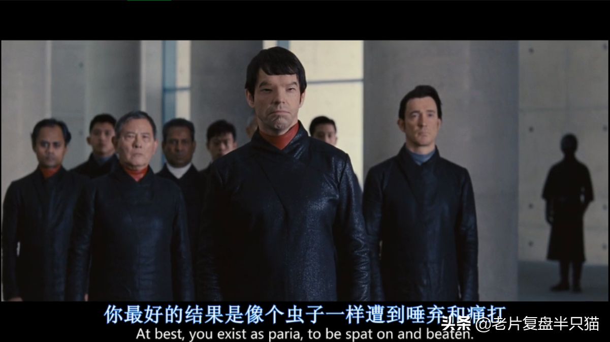 5、复制人的故事里,雨果维文化妆成一个单眼皮的韩国人,成为了“统一部”的头目,亲自执行了对复制人星美的死刑。这个统一部成天做的事情,就是规避任何能激发民众自我意识的文字或声音或视像的东西,像出版人故事拍成的电影,在这个时代就属于是禁片,只能躲起来看,有点像文字狱。所以,这里他代表了“思想的秩序”。