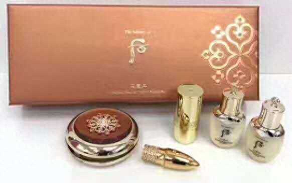 含天气丹华泫抗衰老滋养精华成分完美融入于气垫粉底霜中,让你接触粉底那一刻,享受滋养,贴服,光泽!再用气垫的同时都在为肌肤源源不断的输入抗衰老护肤精华,套装内还配送同系列的奢华隔离打底霜和粉底刷配合使用,打造如皇后般亮泽美肌