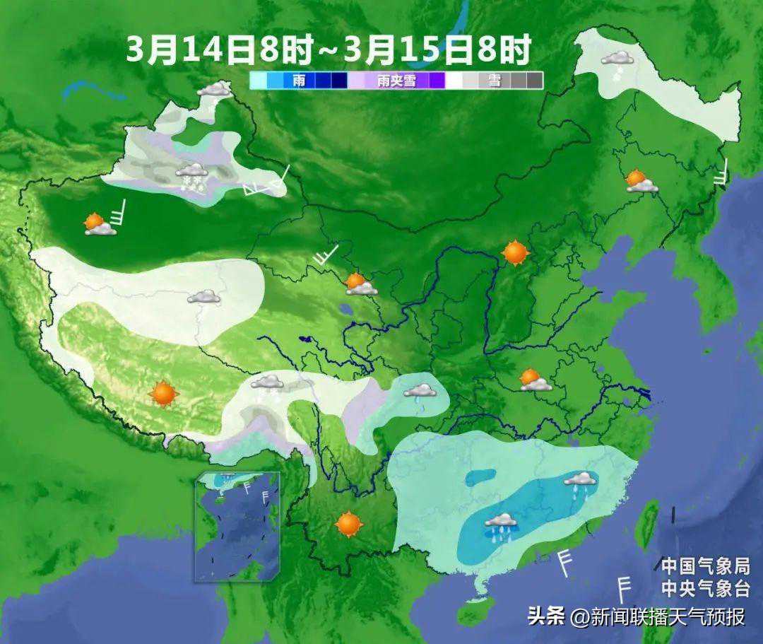 后天(14日)降水还将进一步向东发展,贵州、广西至福建、浙江南部都有雨,其中广西中东部至福建西部一带有中到大雨。