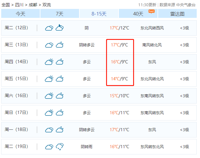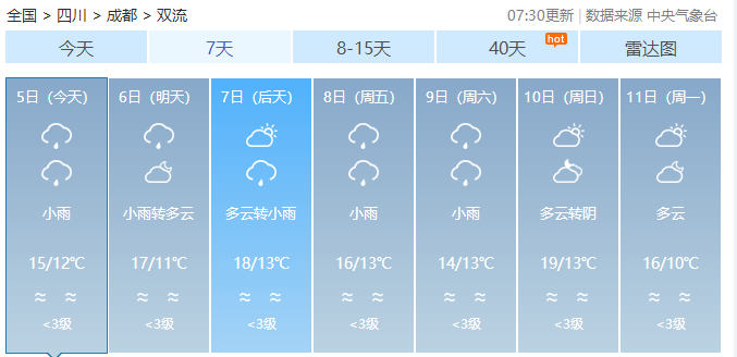 未来几天双流基本都是小雨!