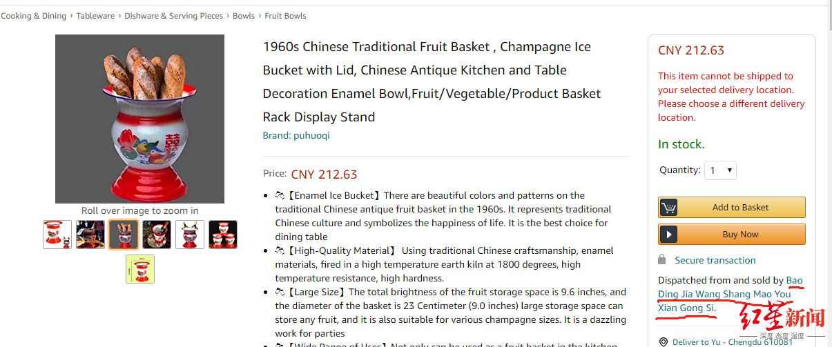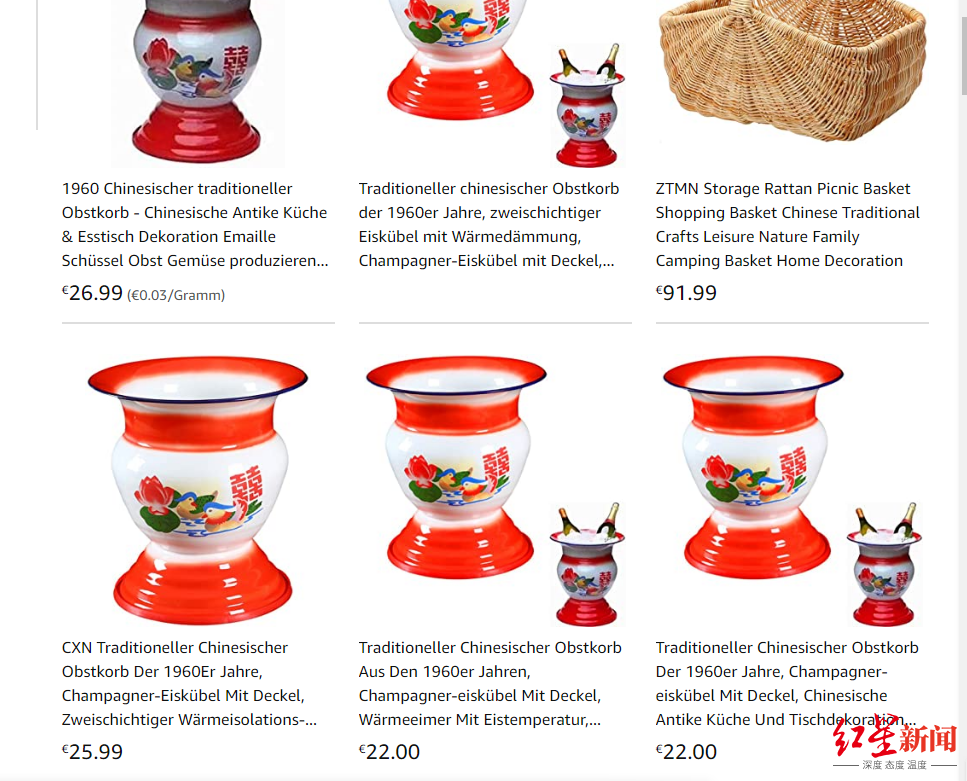 2月22日,红星新闻记者打开美国亚马逊官网,搜索“chinese+basket”(中国菜篮)后,在商品列表中找到了这款正在售卖的痰盂。