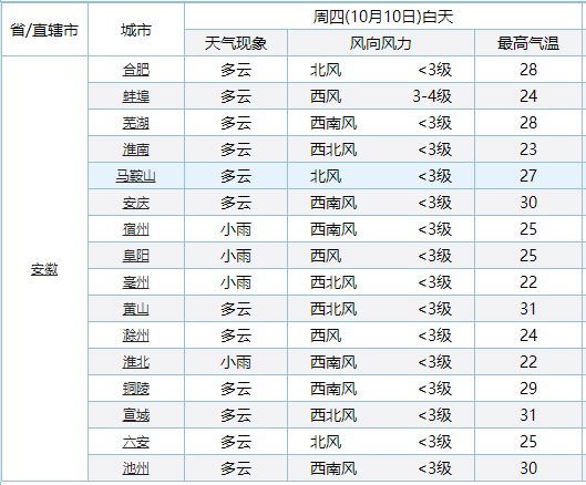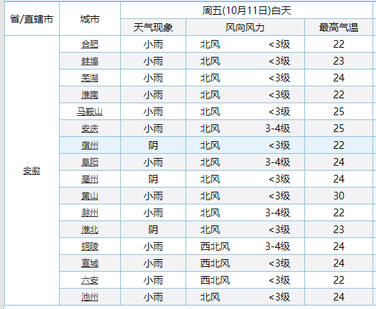 各城市天气预报