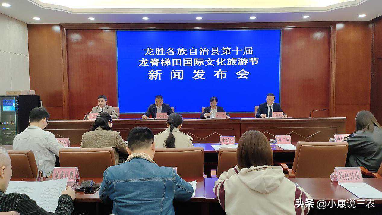 4月7日,广西桂林市龙胜各族自治县第十届龙脊梯田国际文化旅游节新闻发布会在桂林市人民政府召开。会上公布,第十届龙脊梯田国际文化旅游节以“世界梯田原乡多彩风情龙胜”为主题,将于4月10日正式开幕。