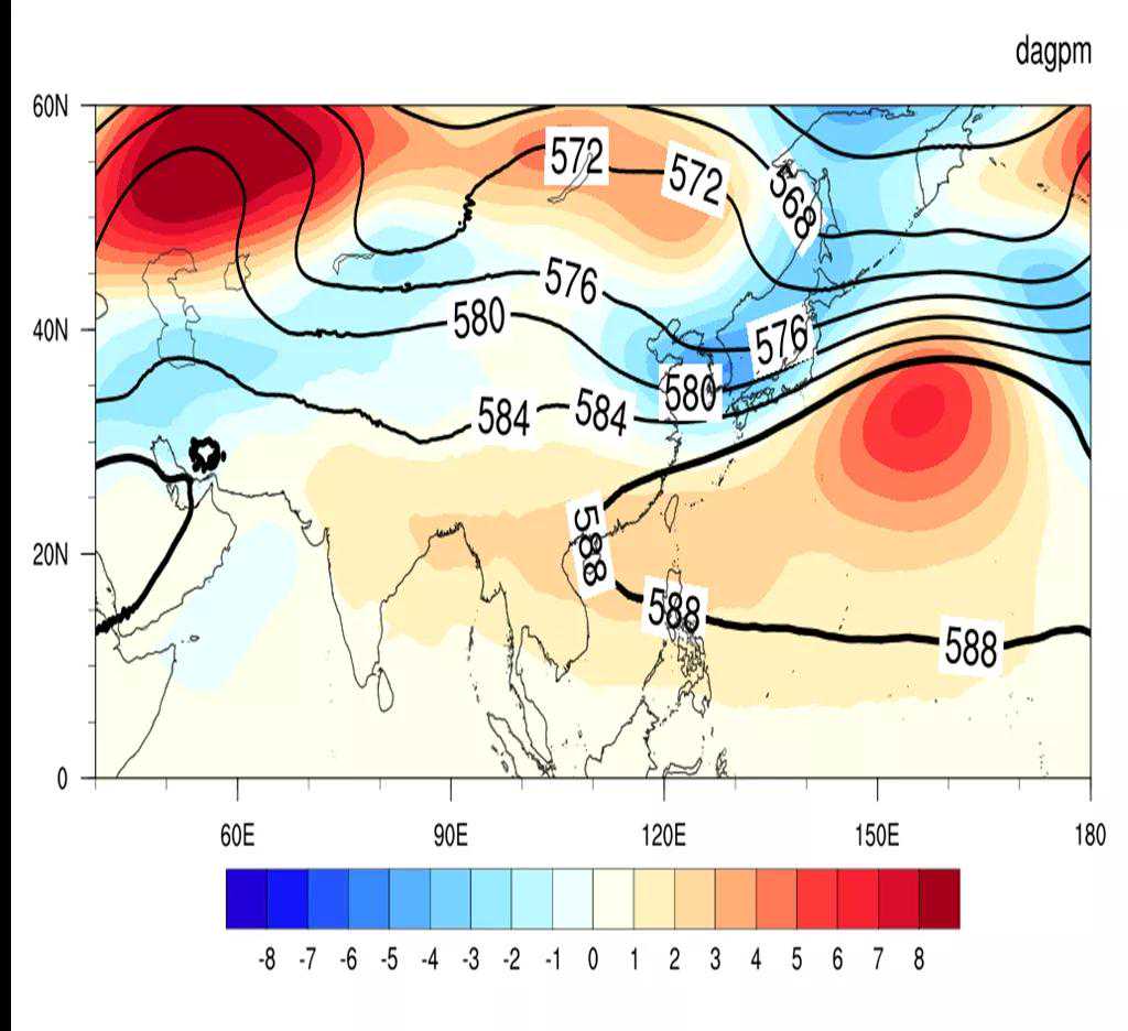 一方面,副热带高压很“强势”:今年6月下旬以来,副热带高压异常偏西、偏南、面积偏大、强度偏强,由于热带对流活动抑制,台风生成难度极大。