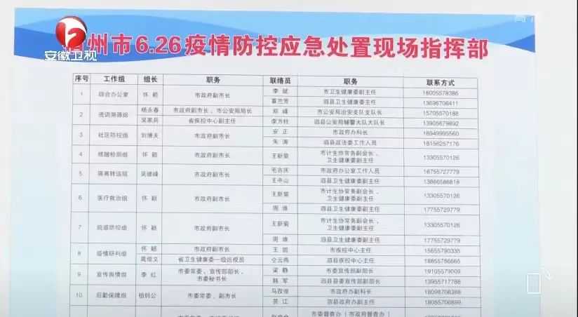 另外,根据《安徽新闻联播》画面显示,宿州市还成立了6.26疫情防控应急处置现场指挥部。