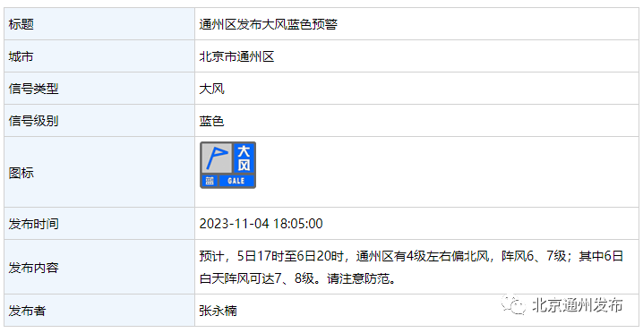 通州气象台发布大风蓝色预警