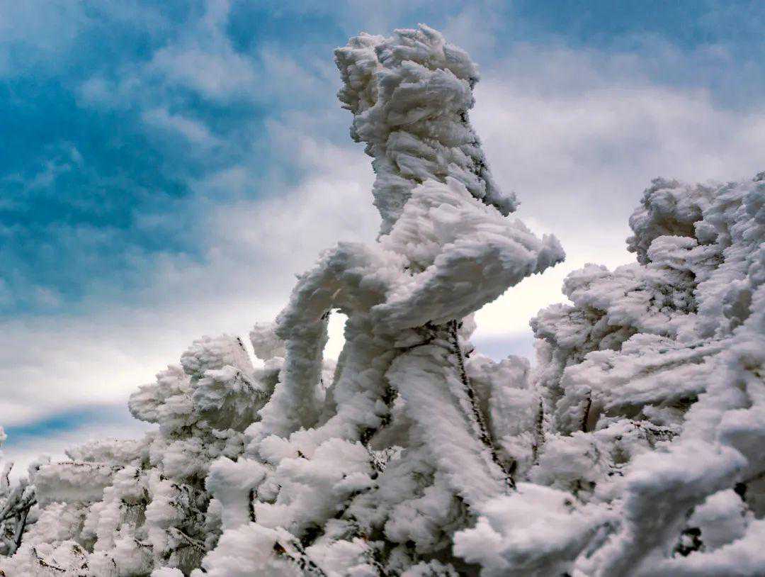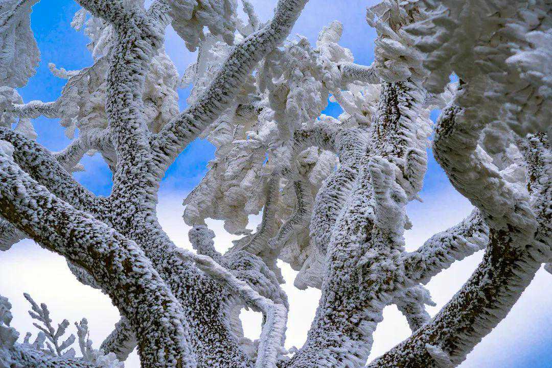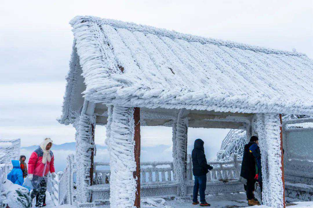 凝霜挂雪,戴玉披银。人在其中,如入仙境。