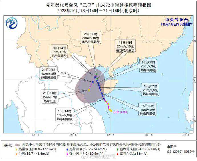 据中国天气网广西站讯,今天(18日)14时,今年第16号台风“三巴”在我国南海海面生成,16时强度为热带风暴级,位于海南省三亚市西南方向约75公里的海面上,即北纬17.8度,东经109.0度,中心附近最大风力有8级(18米/秒),中心最低气压为1000百帕。