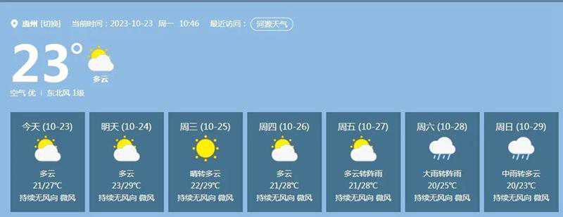 惠州具体天气预报: