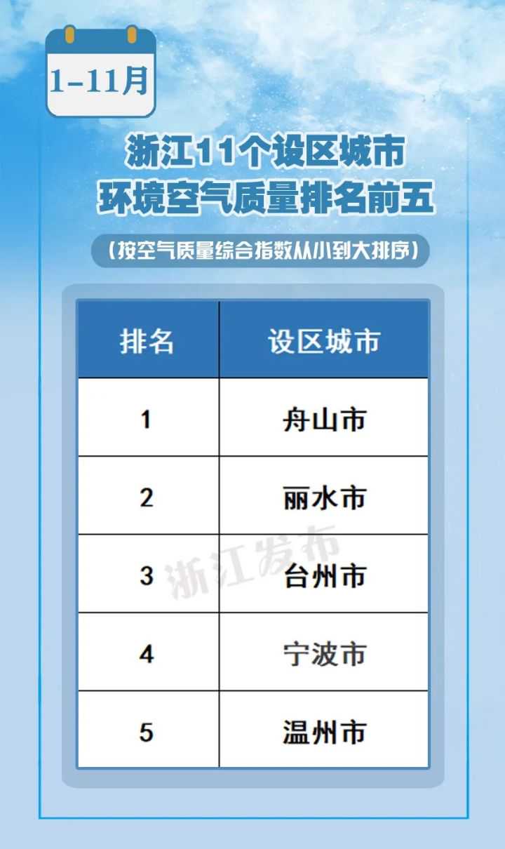近日,全国以及浙江11月、1-11月环境空气质量状况出炉。你的家乡空气质量怎么样?一起来看——
