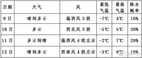 明天早晨气温仍在-7℃左右