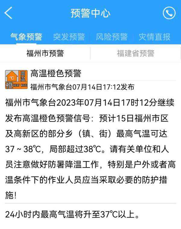 高温橙色预警信号