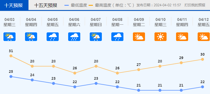 预计清明假期我市降雨频繁,并伴有短时强降水、8到10级雷雨大风和局地冰雹等强对流天气。