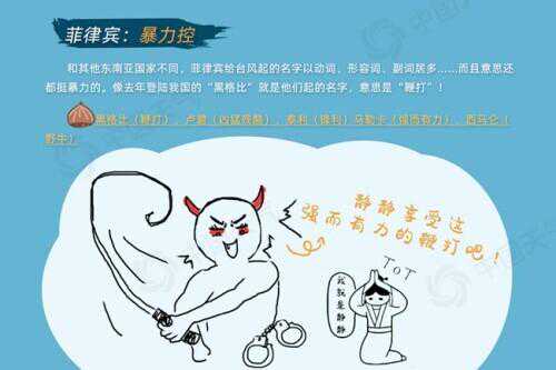 和其他东南亚国家不同,菲律宾给台风起的名字以动词、形容词、副词居多,而且意思还都挺暴力的。比如“黑格比”的意思“鞭打”,卢碧的意思是“残酷”……