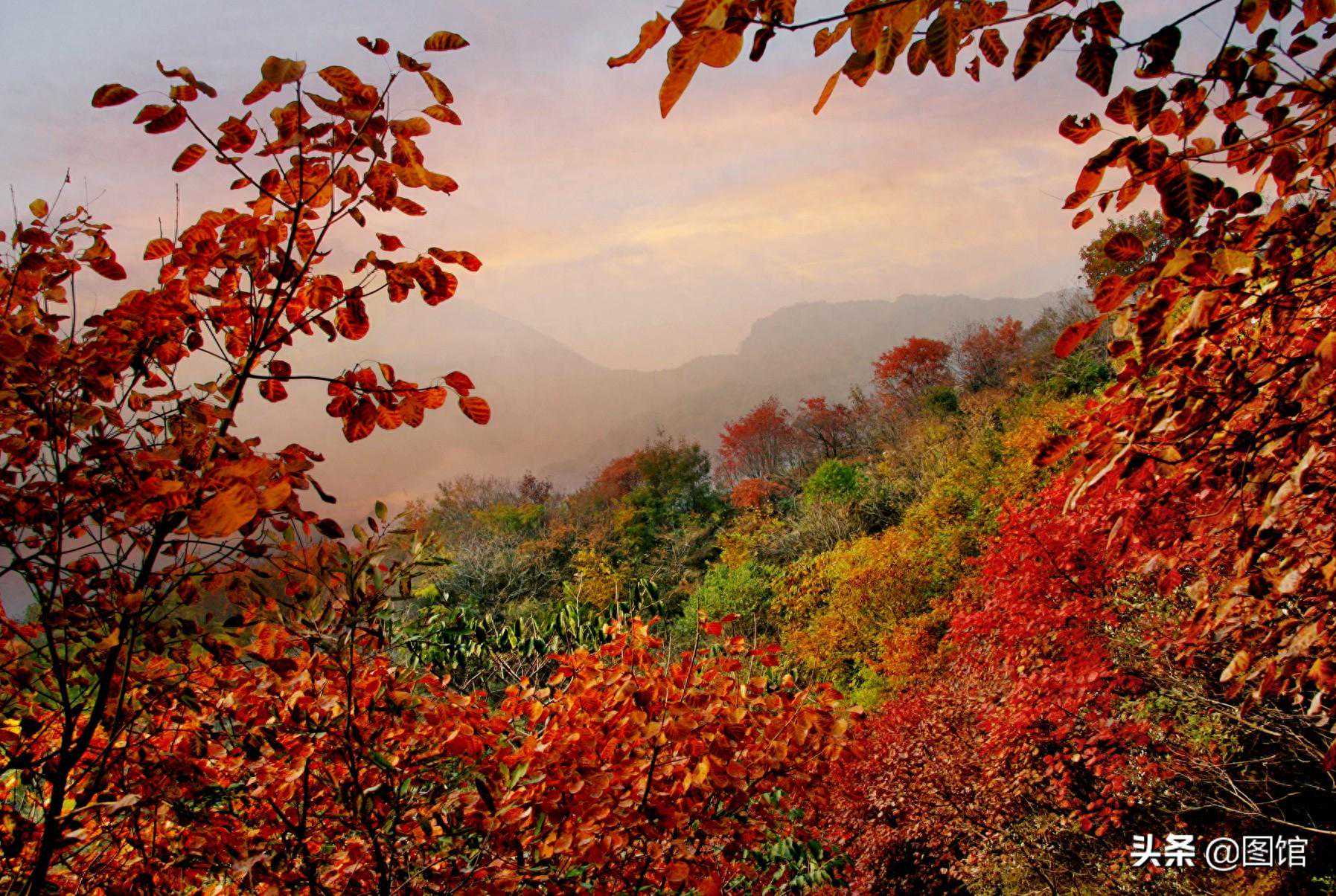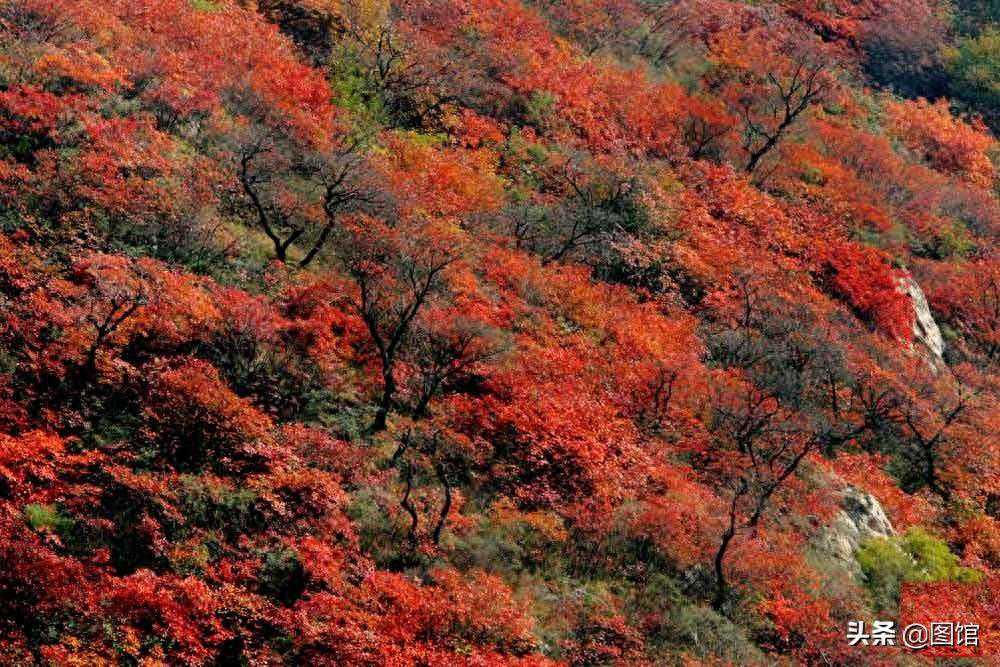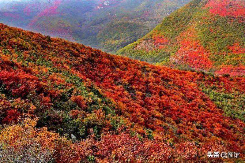 大鸿寨的红叶林被称为红叶谷,是一条长约2000米、宽约1000米的美丽峡谷,位于过风亭的东侧。这里是秋天的黄金时间,金色的阳光下,大鸿寨红叶谷的黄栌树呈现出令人醉心的红色。整个谷底被红叶所覆盖,宛如一幅绚丽的画卷。这些红叶表面光滑且富有质感,仿佛阳光下的珍珠,美得让人难以忘怀。