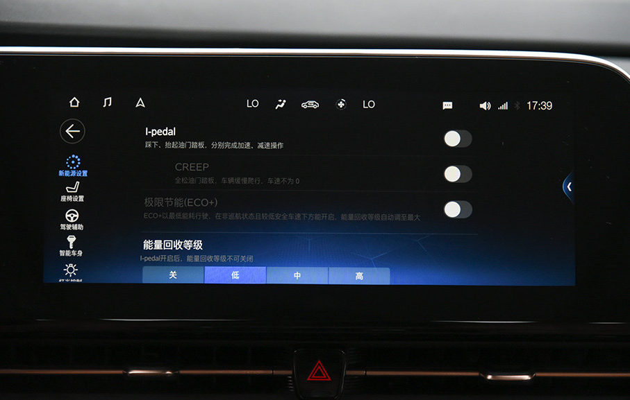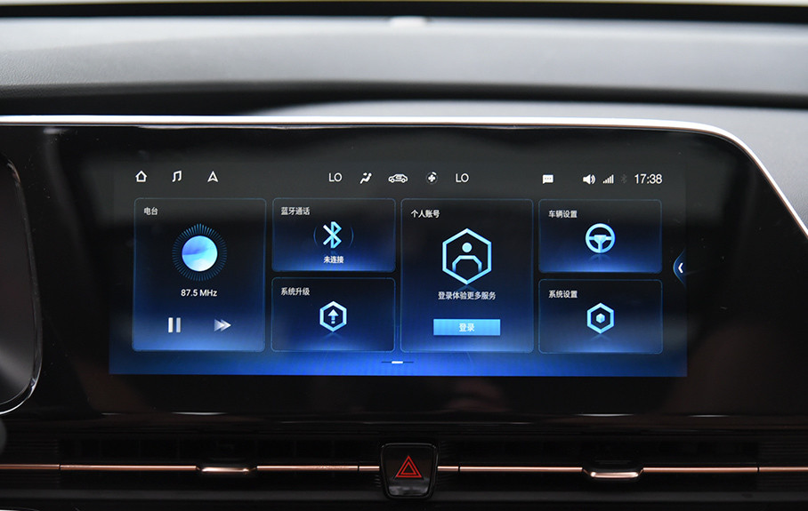 上车后你会发现,在中控大屏上最显眼的是关于车辆的电池电量显示,支持Carlife手机互联、空气净化器、过滤等实用功能。