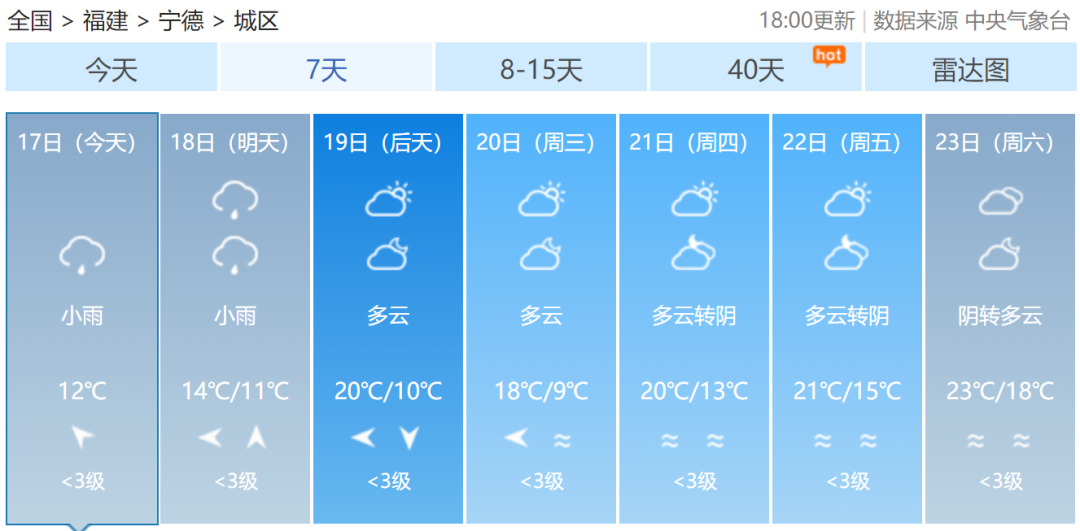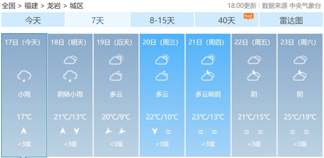 福建各地一周天气预报↓