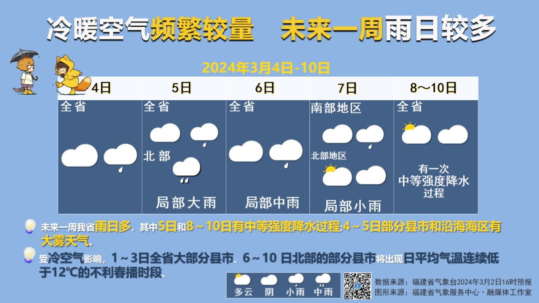 7日,低层由偏北逐渐转为偏东气流,全省多云到阴,局部有小雨。